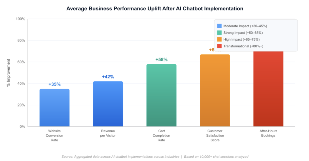 Average Business Performance After Implementing AI ChatbotSource: Aggregated data across AI chatbot implementations across industries