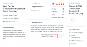 This is why we’re so thrilled to highlight our Clutch profile and our stellar star average! In a recent review, the president of NLEQ- A Philadelphia based Construction Equipment company praised our custom CRM software skills!